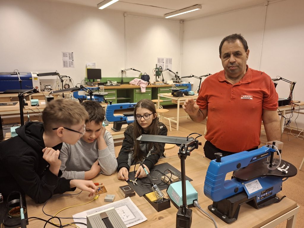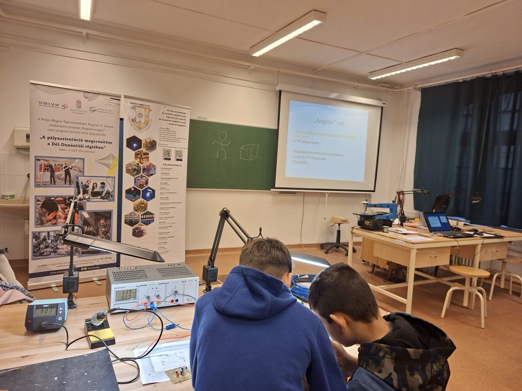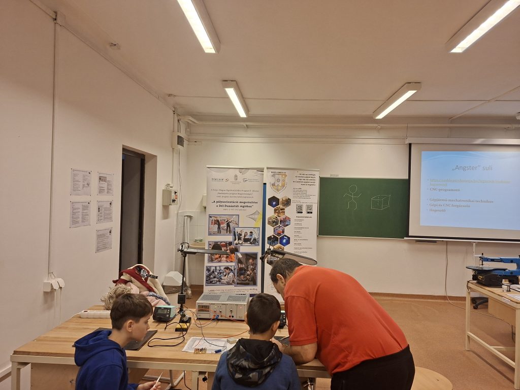 Február 20-án, pénteken a BVSZC Angster József Technikum Digitális Közösségi Alkotóműhelyében (DKA) különleges élményben volt részük a felső tagozatos általános iskolásoknak. Szűcs László és Költő Előd szakoktatók az elektronika és elektrotechnika, valamint az informatika és távközlés ágazat területéről hozták közelebb a műszaki pályák világát egy interaktív, élményalapú foglalkozás keretében.